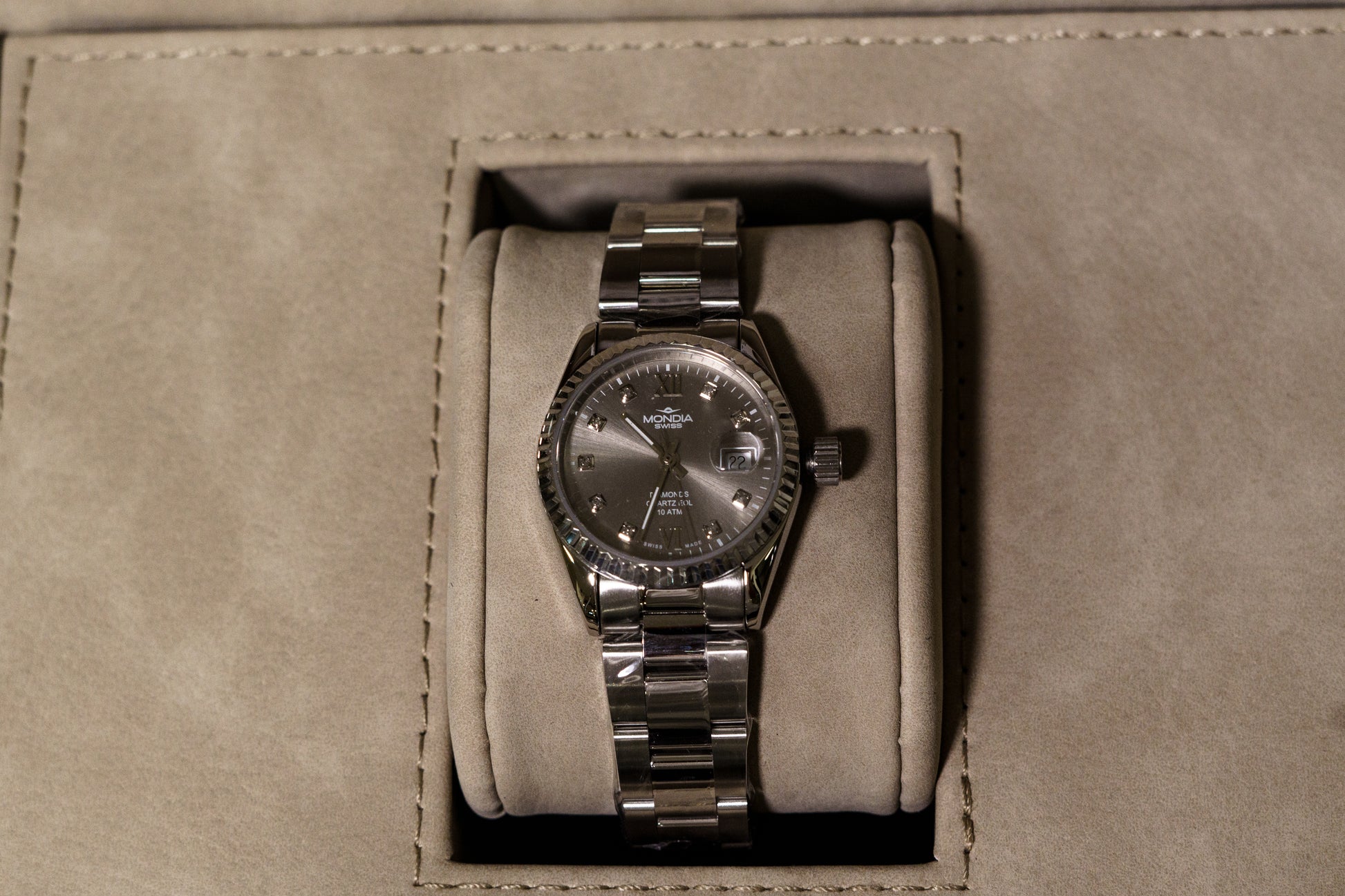 Mondia Lady Datejust Oyster quadrante silver con brillanti e movimento quarzo (ref. MS-207-SS-05DGY-OY)